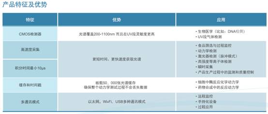 全新的FX系列,使用CMOS探测器有效提高灵敏度。每秒4500张的图谱获得速度,以及强化的模块通讯集成了以太网以及WiFi,全新的光谱仪在UV-VIS波段响应更加灵敏,更快的分析速度在食品的分类拣选及流程、生物科学等行业表现更加。